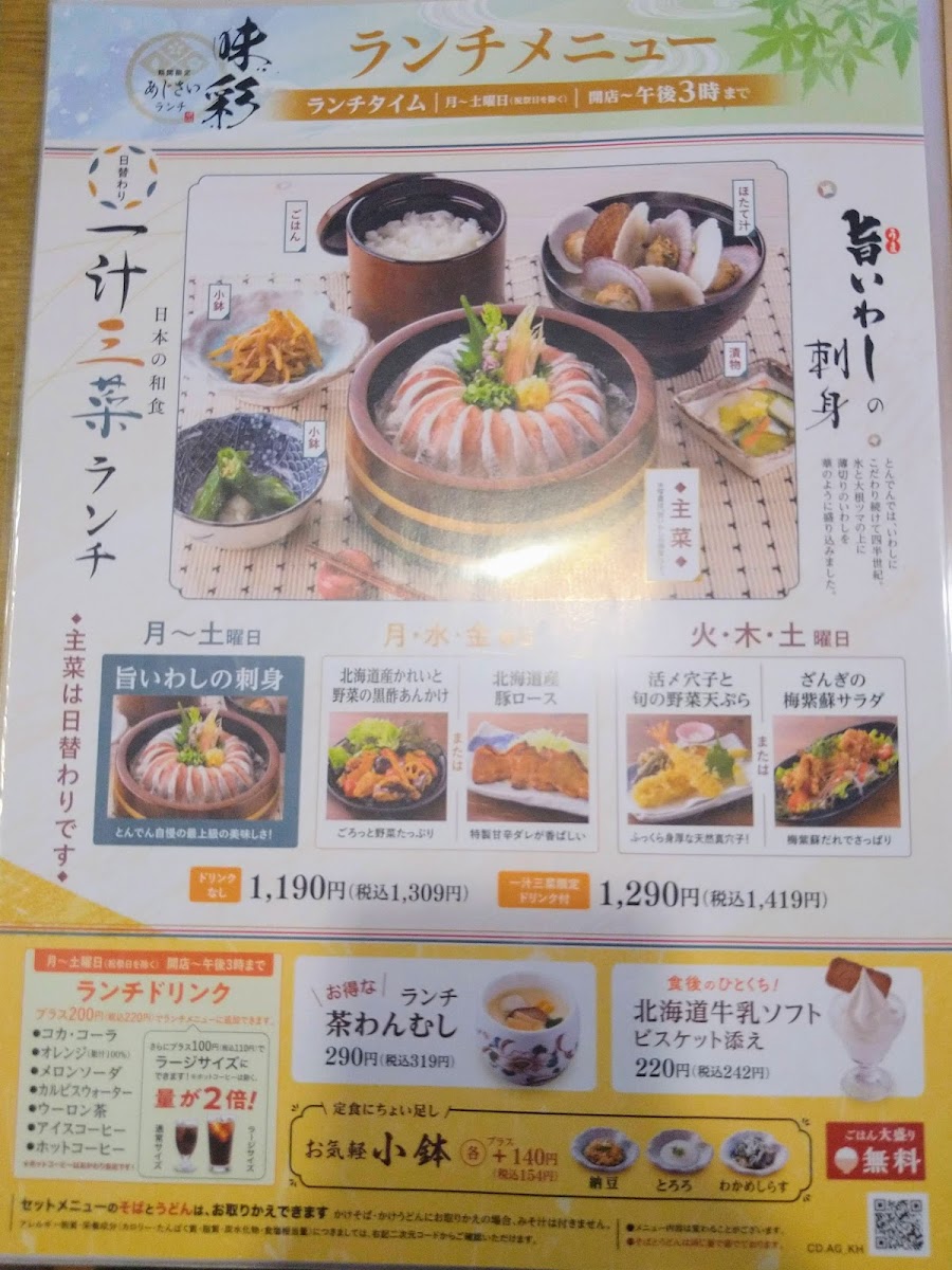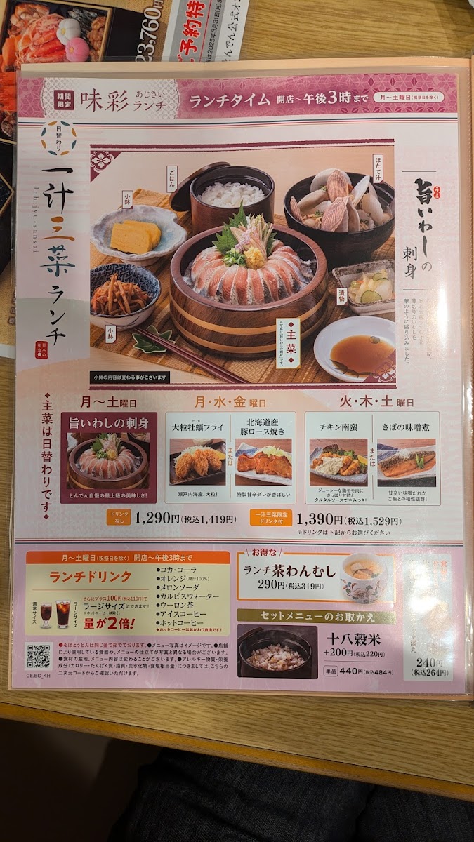 “ 2024年12月11日のテレビ番組で紹介されていたので、2024年12月12日(木曜日)のランチタイムで初利用させていただきました。 入店時間は午前11時を少しまわった頃。入店すると「いらっしゃいませ。」の声は聞こえたものの、スタッフさんは出入口へなかなか来ず、「この店は自由に空いてる席に座って良いスタイルなのかな?」と、相方と話しているところへ、ようやく女性のスタッフさんが案内へ登場。(この点は他の方も似たような内容を口コミされてますね。) 「テーブルのお席と畳のお席がございますが、どちらになさいますか?」と聞かれ、テーブル席をお願いすると、丁寧に案内して下さり、また、ランチメニューやオススメ料理の内容も丁寧に紹介して下さり、ここで好感度はアップしました。 味覚と言うのは人間の五感で1番の役立たずであり、味の濃い薄いに個人差があったり、食材の好き嫌いも人それぞれなので、味に関しての評価はしませんが、ランチメニューやグランドメニューには、リピして食べたい物が多数ありましたので、また利用させていただきます。 食事を終えて退店する時間には、平日にもかかわらず、入店待ちのお客さんが多かったですので、なかなかの人氣店の様です。 また、席で提供された飲み物が、温かいお茶かと思いきやまさかの紅茶で、なかなか面白かったです。 ”